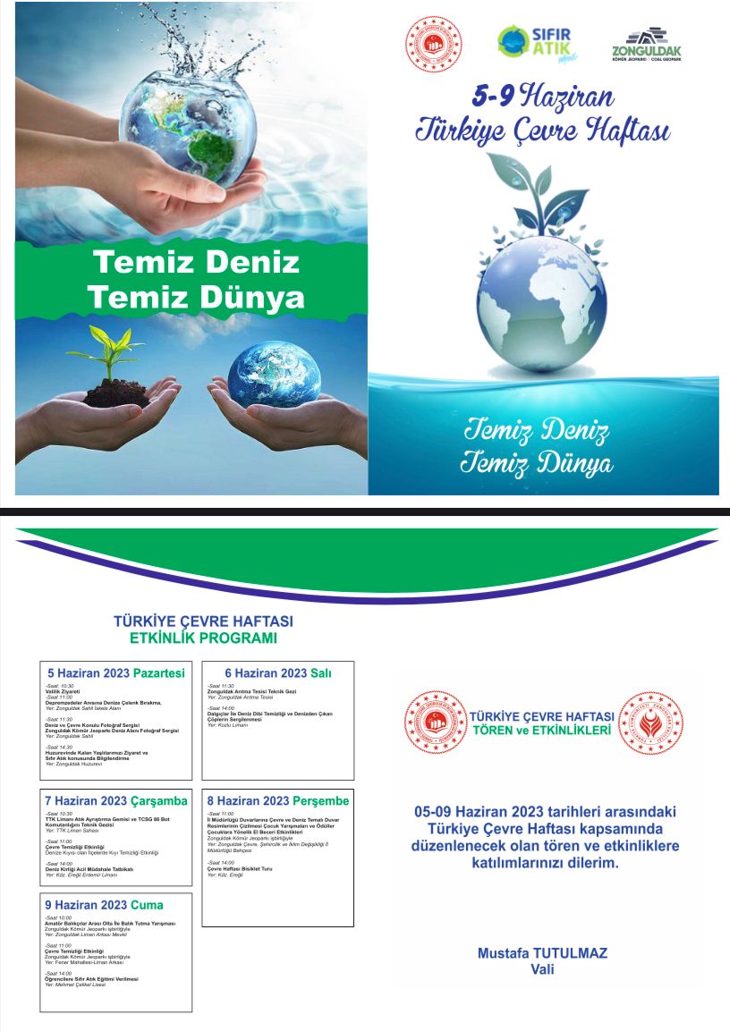 05-09 Haziran 2023 tarihleri arasındaki Türkiye Çevre Haftası kapsamında çeşitli etkinlikler gerçekleştirilecektir.